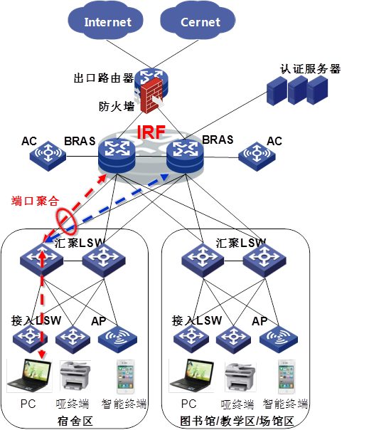 3、 支持BRAS IRF热备功能,避免设备单点故障的同时简化运维管理工作。