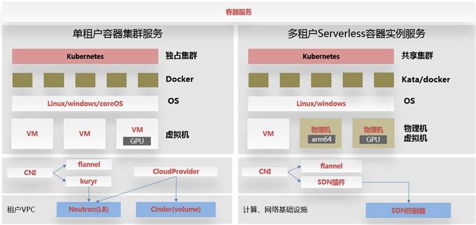 为了应对特定行业基础底层复杂多样性,即有遗留的非云化物理机、小型机,也有私有云、混合云和公有云场景。容器云通过云适配层和自动/手动节点安装方式,可以适配常见的公/私有云及非云化场景。