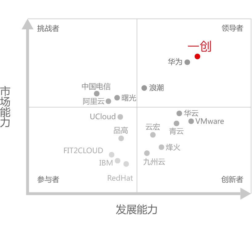 计世资讯(CCW Research)从发展能力和市场能力两个维度对中国云管理平台市场中主要厂商进行竞争力分析。通过系统评估能够看到新华三、华为、浪潮是目前中国云管理平台市场中处于领导者位置的厂商。