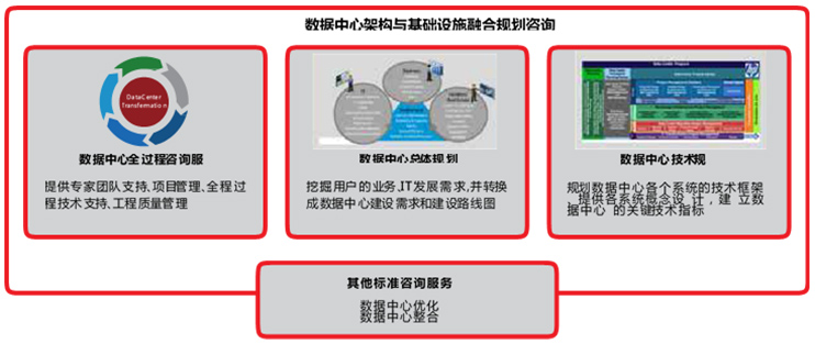 新一代数据中心涉及庞大的投资规模,建设怎么样的数据中心、该投资多少钱、该如何投资,每个相关部门都会根据部门自身利益提出要求。数据中心咨询服务梳理业主业务和IT基础架构的发展需求,制订未来10-15年数据中心建设蓝图,其中包括数据中心的面积、用电规模、制冷量以及数据中心可靠性等级,并以此为基础制定支撑业务长期稳定发展的数据中心未来发展规划。